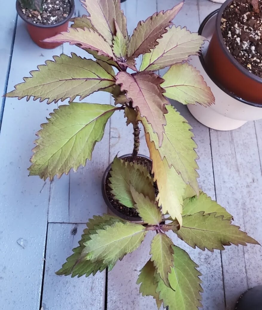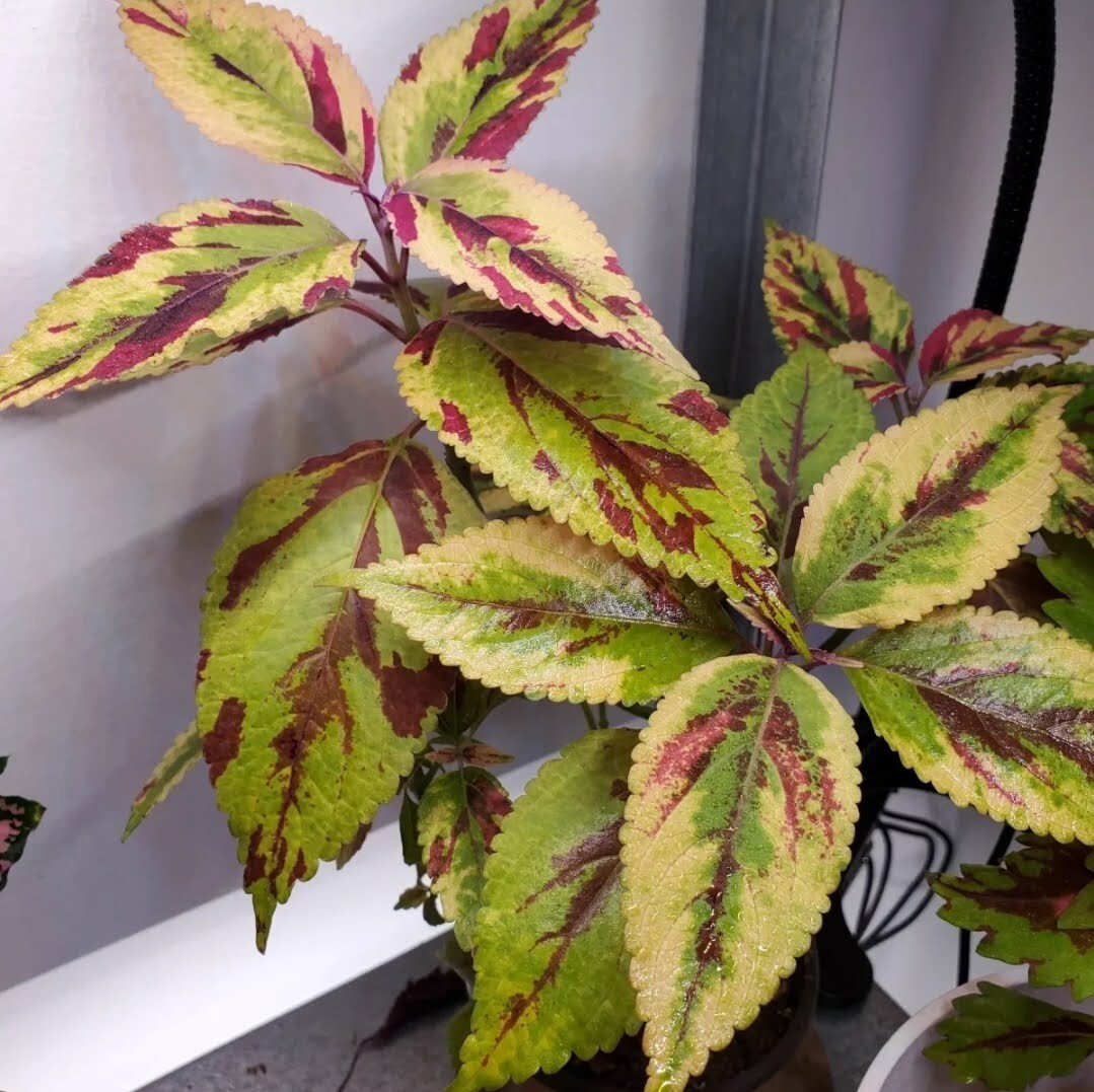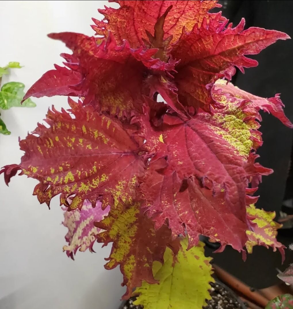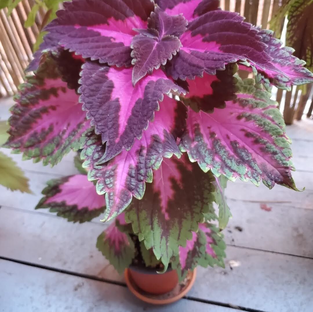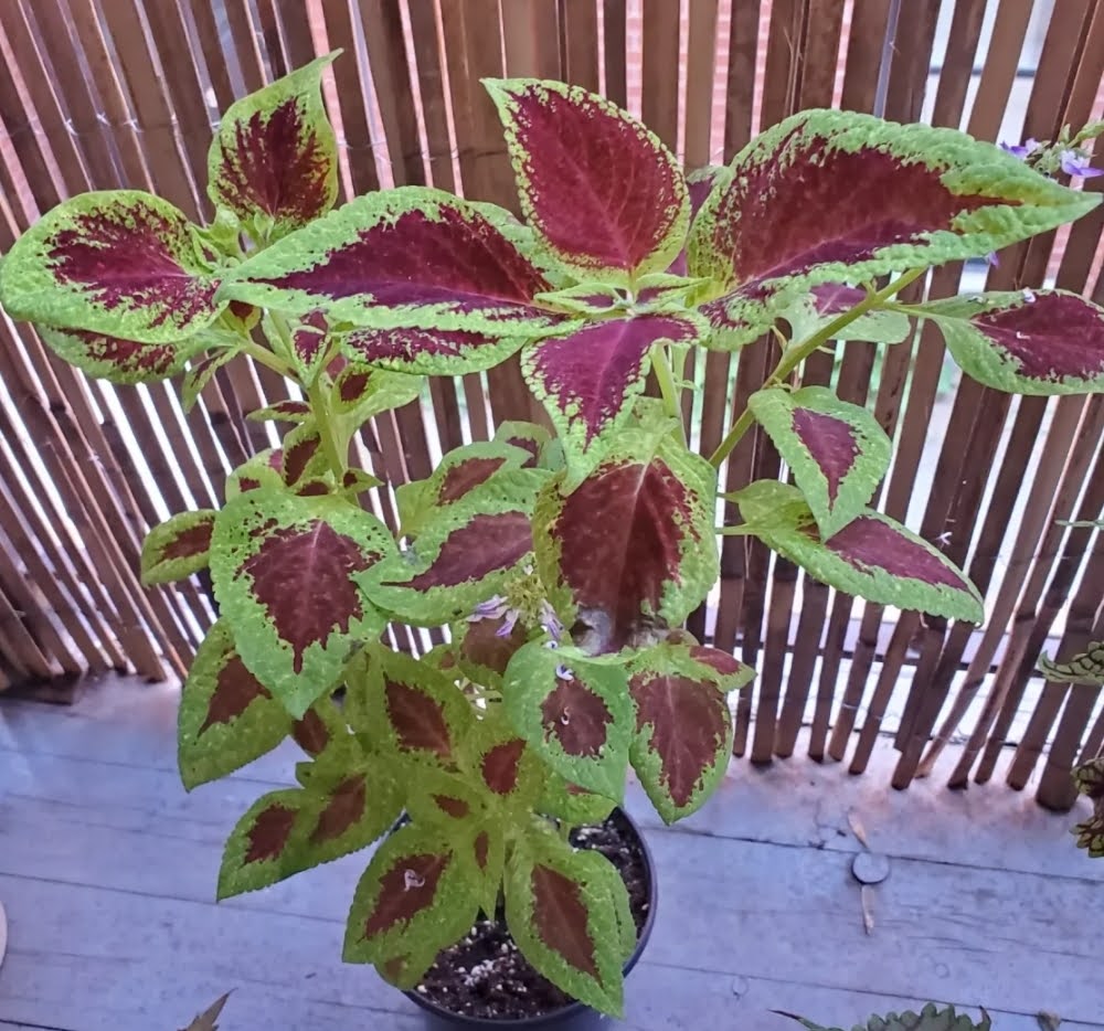 Une plante aussi qu’on trouve beaucoup à Montréal dans les parterres et les jardinières, le Coleus (Plectranthus scutellarioides). Ce que j’aime avec cette plante, c’est que lorsqu’elle a soif, ses feuilles se mettent à pendre lamentablement, et là je sais que c’est le bon moment de l’arroser. En plus, comme le lierre, il existe une infinité de variétés différentes, toutes plus belles les unes que les autres. En voici quelques unes des miennes.